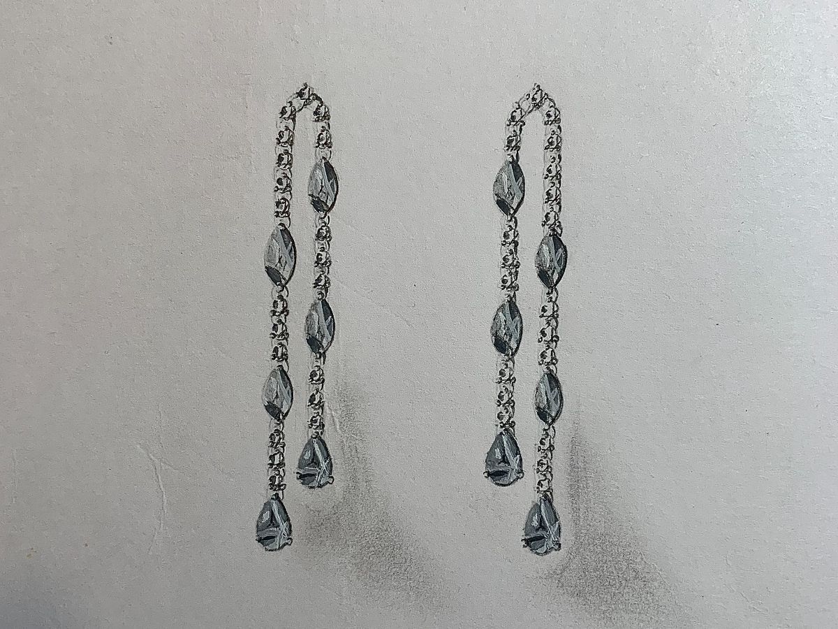 We presented a few different lay-outs with genuine diamonds and fine-tuned all the different ideas together. Once we agreed on a specific design and budget, we drew a detailed sketch to have a better idea of the look and feel.